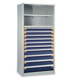 - 3" drawers @ 30 compartments/ea (3)ea - 4" drawers @ 30 compartments/ea (4)ea - 6" drawers @ 12 compartments/ea |